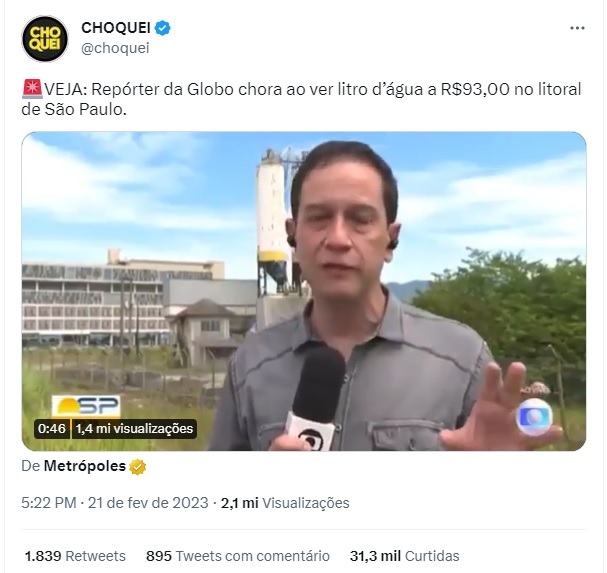 A página Choquei emplacou duas das postagens com mais engajamento. Uma delas que ressaltou a comoção de um jornalista ao falar sobre o preço abusivo cobrado pela água mineral na região depois da tragédia. Conteúdos sobre o preço, inclusive, geraram cerca de 4 mil postagens e compartilhamentos. A outra citou a visita de Lula ao local da tragédia. A quinta publicação com mais interações foi de Janja, que citou “tristeza e angústia”.
